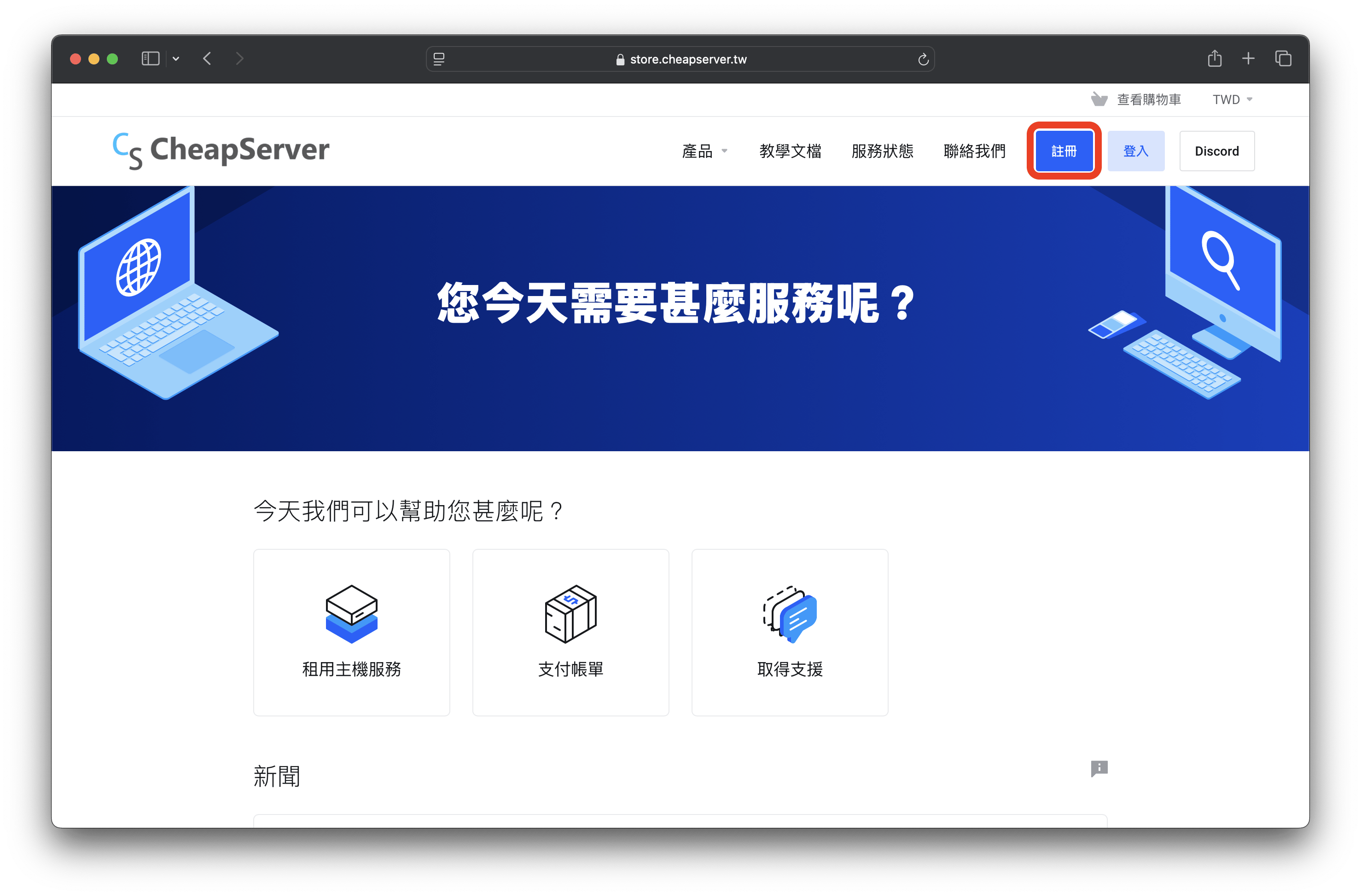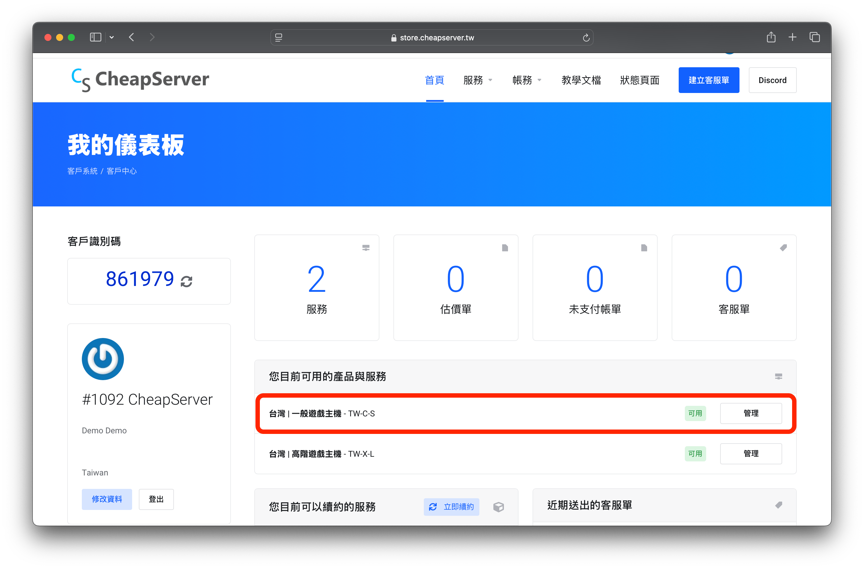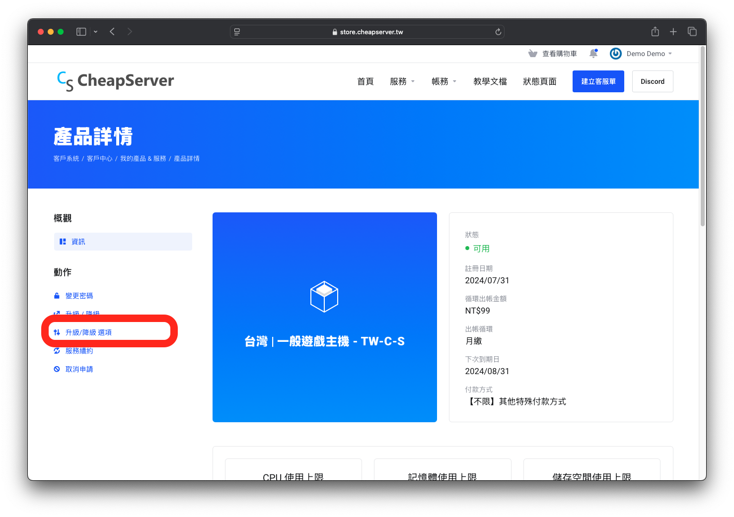 2. 在首頁 「**您目前可用的產品與服務」** 區域選擇要升級的方案。
